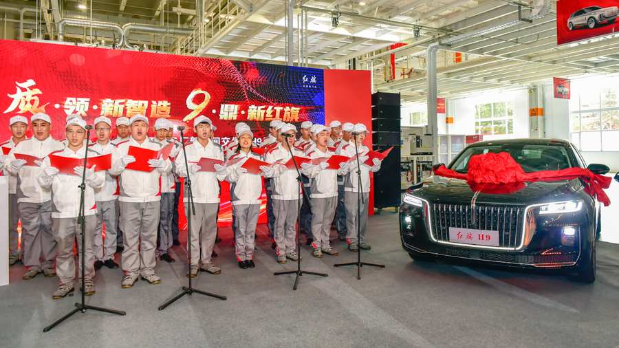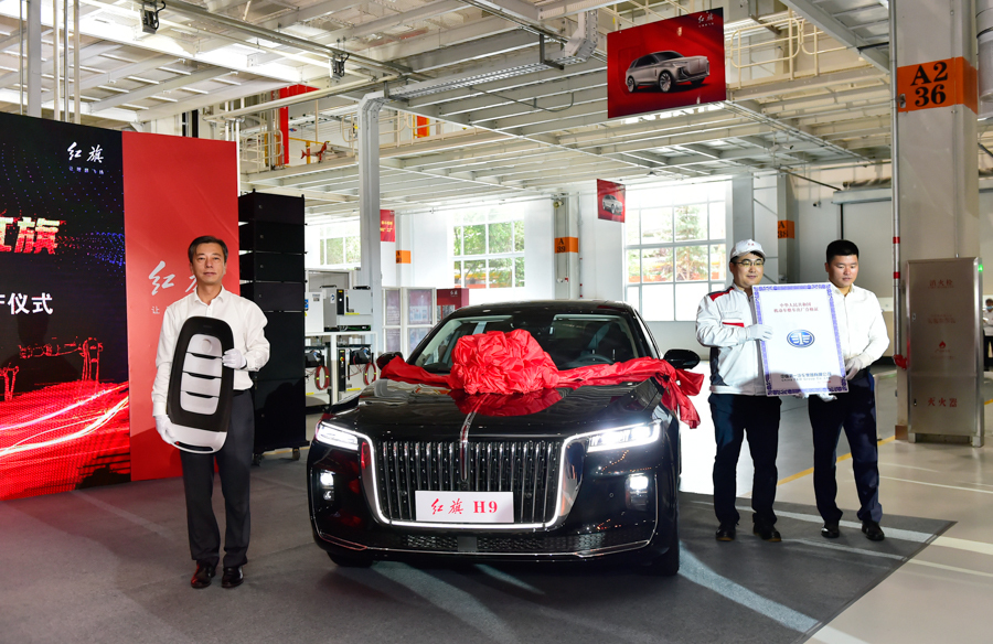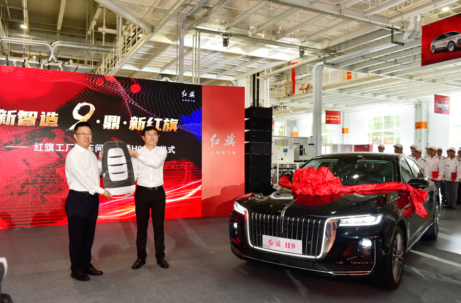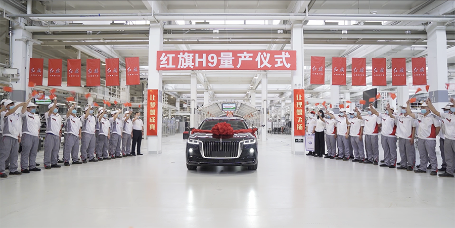 ▲首台量产红旗H9下线